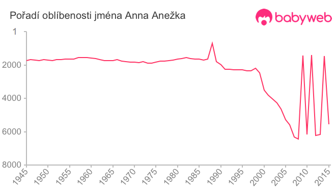 Statistika vývoje jména byla před rokem 1945 značně nepřesná. Od roku 1958 je odchylka menší než 10%. Zdroj: MVČR.