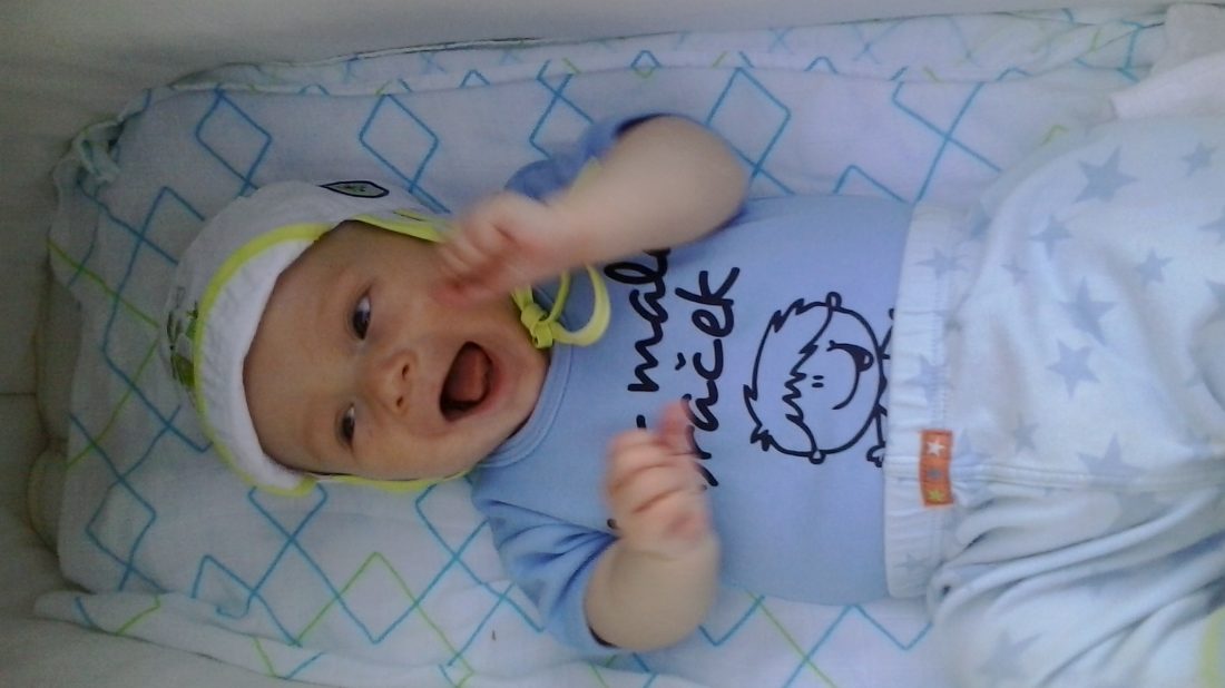 Adamko je naša malá rybička. Je veľmi vnímavý a pokojný. Je to malý smejko, ktorý okolo seba šíri pozitívnu energiu. Som zvedavá ako sa jeho povaha bude rozvíjať a čím všetkým nás prekvapí on. Momentálne ho stále trápia zúbky a začal sa budiť aj v noci. Ale napriek tomu, že ďasienka ho veľmi bolia, nekričí, len skor mrnčí. Pýta si samozrejme viac našu pozornosť a viac ho nosím ale v porovnaní s niektorými miminkami, ktoré neustále plačú a potrebujú sa nosiť, on je stále náš malý pokladík. Každopádne máme doma poriadnu zmes rôznych emócií, nálad, vedomostí, schopností a aj keď to dáva poriadne zabrať, som rada, že ich všetkých mám a že sa môžu navzájom obohacovať a trénovať.