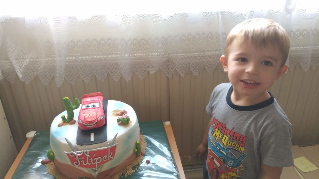 Dort na oslavu Filípkových narozenin jsem objednávala déle jak měsíc dopředu, doporučení na skvělou cukrářku jsem dostala od maminky! Týden před oslavou jsem se jen měla připomenout a potvrdit paní cukrářce, že vše platí tak, jak jsme se domluvily. Dortík jsme vyzvedli v sobotu, jen pár hodin před oslavou. Zároveň jsme vyzvednutí spojili s návštěvou babičky a dědečka v Kolíně – babička slavila narozeniny a svátek a společně s dědečkem slavili výročí svatby. Ti z nás měli obrovskou radost a zároveň byli překvapeni, jak děti rychle vyrostli za tu dobu, co je neviděli, a to jsme tam nebyli „jen“ měsíc…
