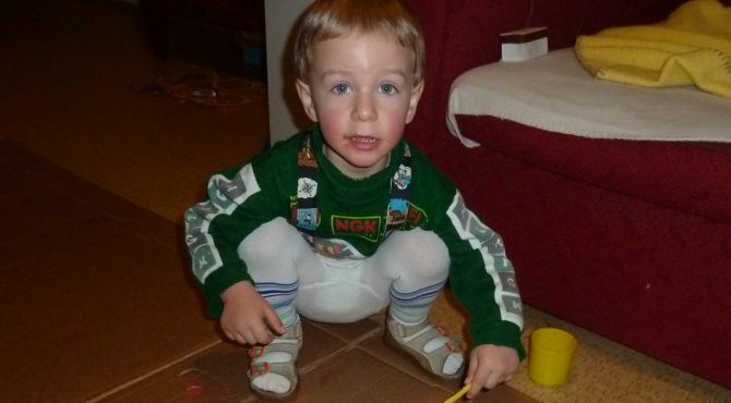 Měli jsme trochu strach, co všechno syn během zasádrování zapomněl, kolik obratnosti ztratil. Naštěstí nic. Na odrážedle, na prolézačkách i při hře navázal přesně tam, kde byl před sádrou.