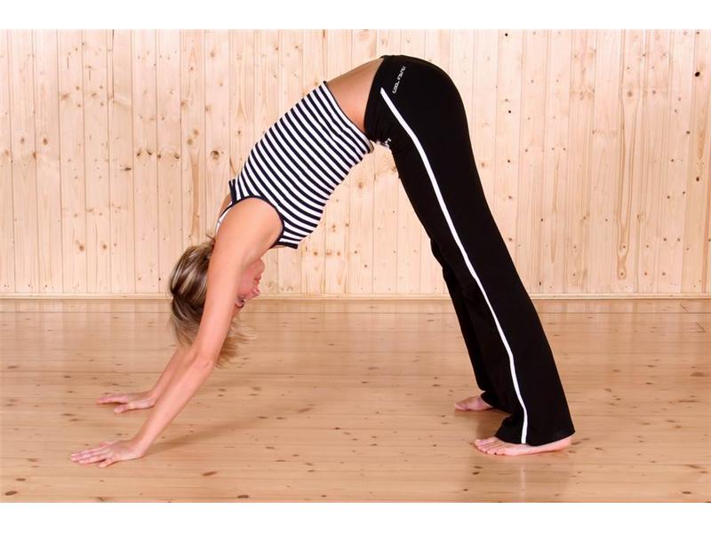 Pomocí této pozice docílíme protažení a posílení břišních a zádových svalů. Pozice Mostu má čtyři fáze a toto je závěrečná (nejsložitější).