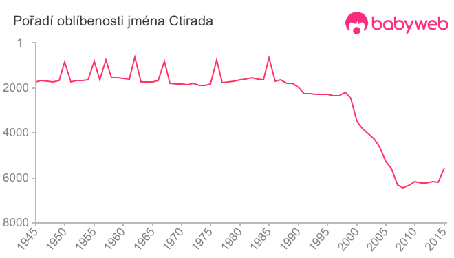 Statistika vývoje jména byla před rokem 1945 značně nepřesná. Od roku 1958 je odchylka menší než 10%. Zdroj: MVČR.