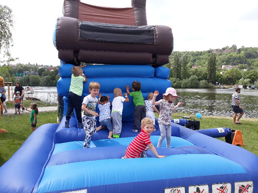 Největšími lákadly pro děti byly nafukovací loď se skluzavkou, skákací hrad a trampolína. Zdroj: archiv redakce