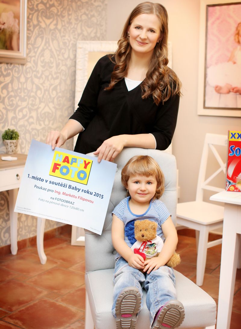 Hlavní partner Happy Foto věnuje absolutní vítězce Adélce fotografii na pěnové desce 120×80 cm v hodnotě 1 499 Kč a krásnou hračku – zamilovaného medvídka.