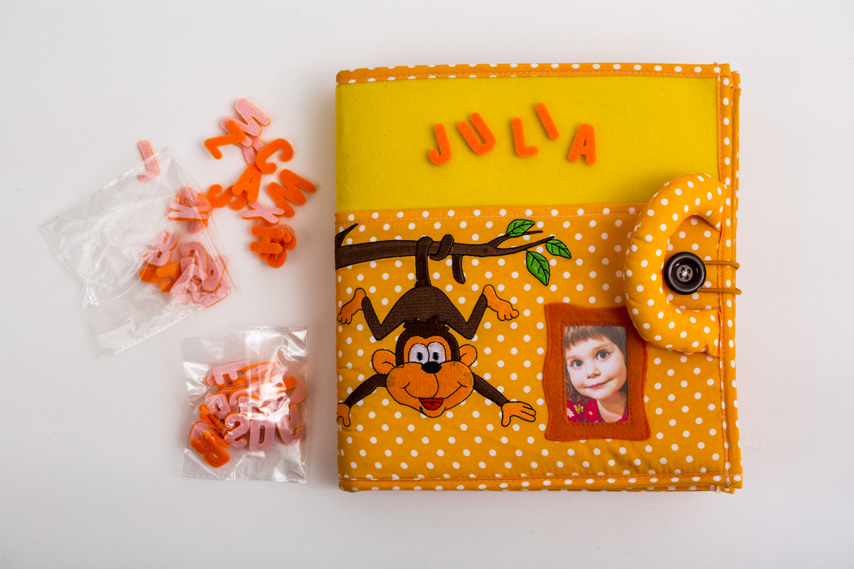 PIQIPI QUIET BOOK: Opička (Piqipi Limited) je interaktivní textilní knížka určená k rozvoji jemné motoriky. . Zdroj: archiv