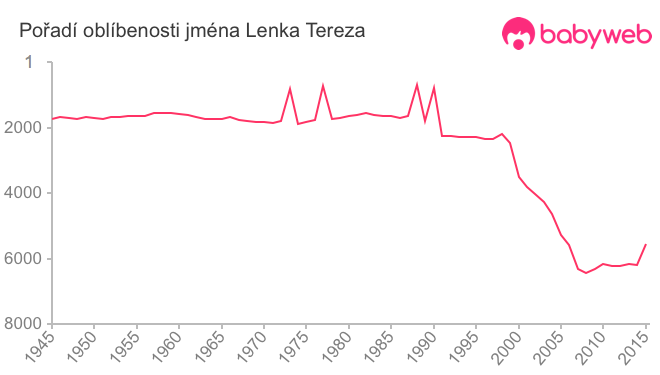 Statistika vývoje jména byla před rokem 1945 značně nepřesná. Od roku 1958 je odchylka menší než 10%. Zdroj: MVČR.
