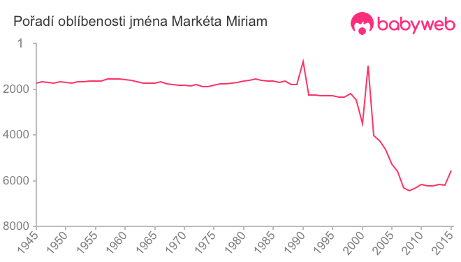 Statistika vývoje jména byla před rokem 1945 značně nepřesná. Od roku 1958 je odchylka menší než 10%. Zdroj: MVČR.