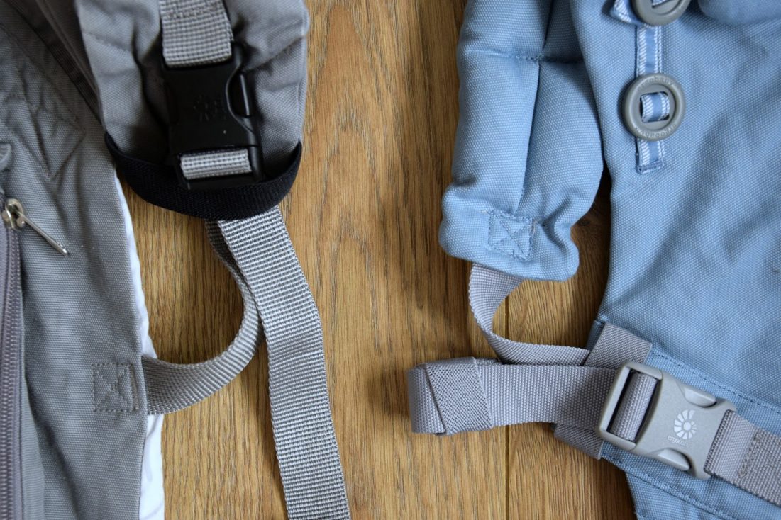 Má zkušenost: Spony u ramenních popruhů snad nikdy nerozepínám a jen si podle potřeby upravuji délku popruhů. Jelikož nosítko nevyužívám zdaleka tak často, jako když byl Martínek miminko, a nenosím ramenní popruhy zkřížené přes sebe, není pro mě tato změna příliš zásadní. Protože ovšem střídám Adapt s Originalem, musím se občas na vteřinu zastavit a sama si pro sebe říct, které to nosítko zrovna mám, abych se natáhla kvůli nastavení popruhů na správné místo.