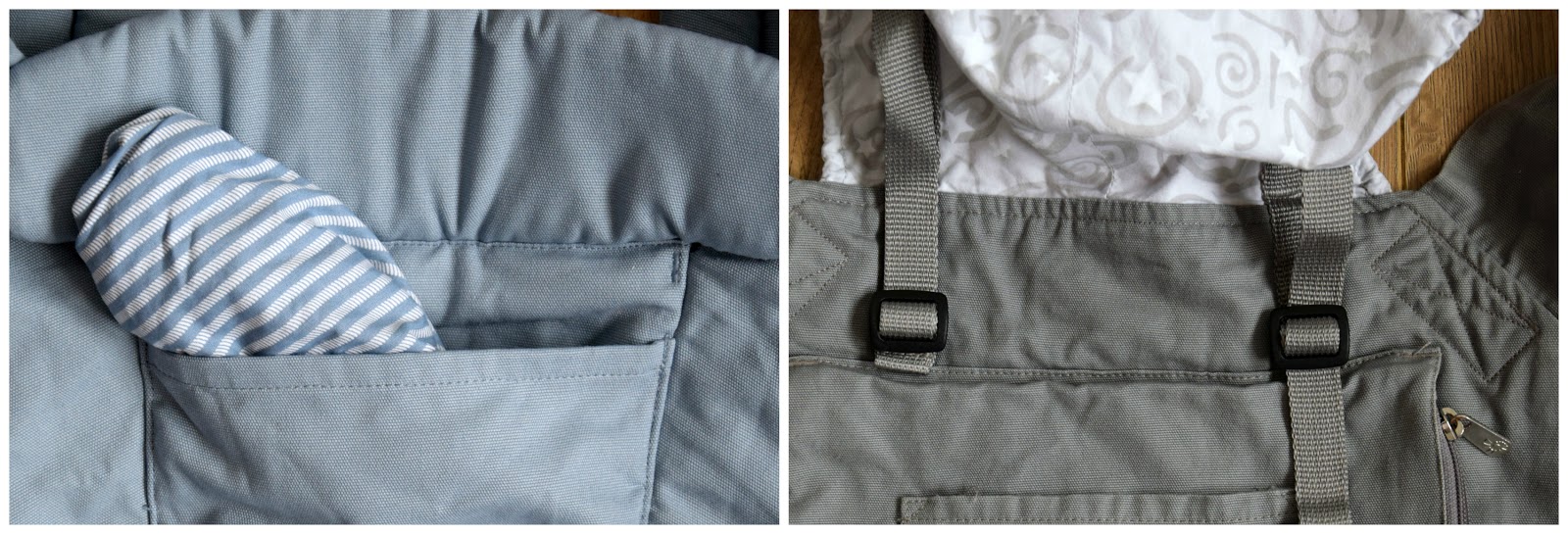 Podívejte se znovu na úvodní fotku. Vidíte ten rozdíl? Zádová opěrka Adaptu má na sobě pouze kapsu s kapucí. Kdežto Original má vlastně kapsu s kapucí na kapse s bočním zipem. Nečekejte žádný velký zázračný prostor. Navíc nezapomeňte, že věci v ní budou přímo na zádech nošeného dítěte. Adapt má jako náhradu malou kapsičku na bederním páse, což jsem vám už ostatně napsala.