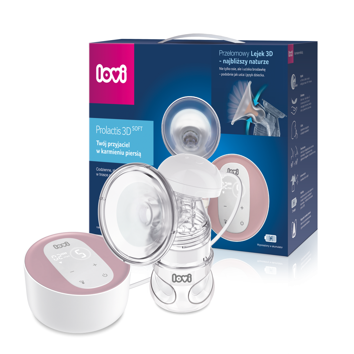 Odsávačka LOVI Prolactis 3DSOFT odsává ve dvou fázích – napodobuje sání dítěte a efektivně saje mléko. Navolit můžete až 18 úrovní síly sání. Výhodou je snadná údržba díky malému počtu dílů. Obsahuje dobíjecí baterie a lze nabíjet přes USB či powerbanku. Součástí je také praktický obal, díky kterému budete mít odsávačku bezpečně uschovanou i během cestování. Objevte i vy každodenní efektivní podporu kojení s odsávačkou LOVI.