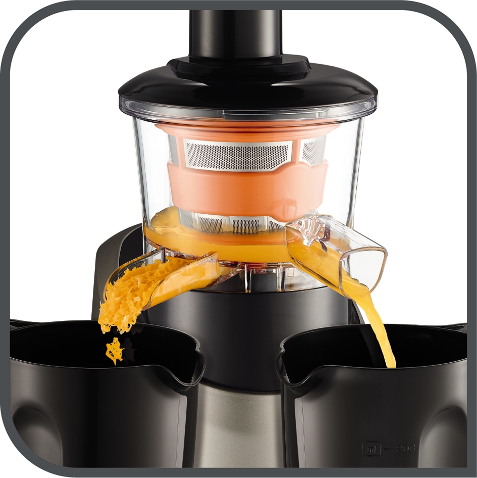Tefal Infiny Juice je jedničkou pro všechny, kteří preferují pohodlí: šťávu můžete servírovat hned do sklenice a rovnou vypít. Tichý a zároveň silný motor se zpětným chodem důkladně zpracuje všechny suroviny, k dispozici je i praktický pěchovač. Přes nerezový filtr je veškerý tuhý odpad separován do externí sběrné nádoby a její čištění je otázkou několika vteřin – všechny díly kromě motoru můžete navíc dát do myčky. Součástí odšťavňovače jsou 2 nádoby 0,8 l na džus a odšťavněné suroviny.
