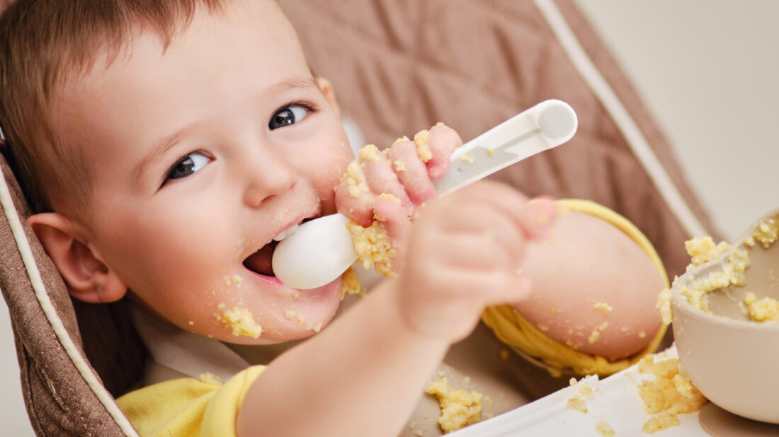 Dítě se jíst teprve učí, dejte mu čas a využijte jeho nadšení pro objevování nových věcí a chutí v době, kdy má o to zájem. Dodržujte ale základní pravidla bezpečnosti – nedávejte děťátku kluzké kulaté jídlo (např. celé kuličky hroznů) dřív, než budete mít jistotu, že ho dokáže bezpečně jíst.